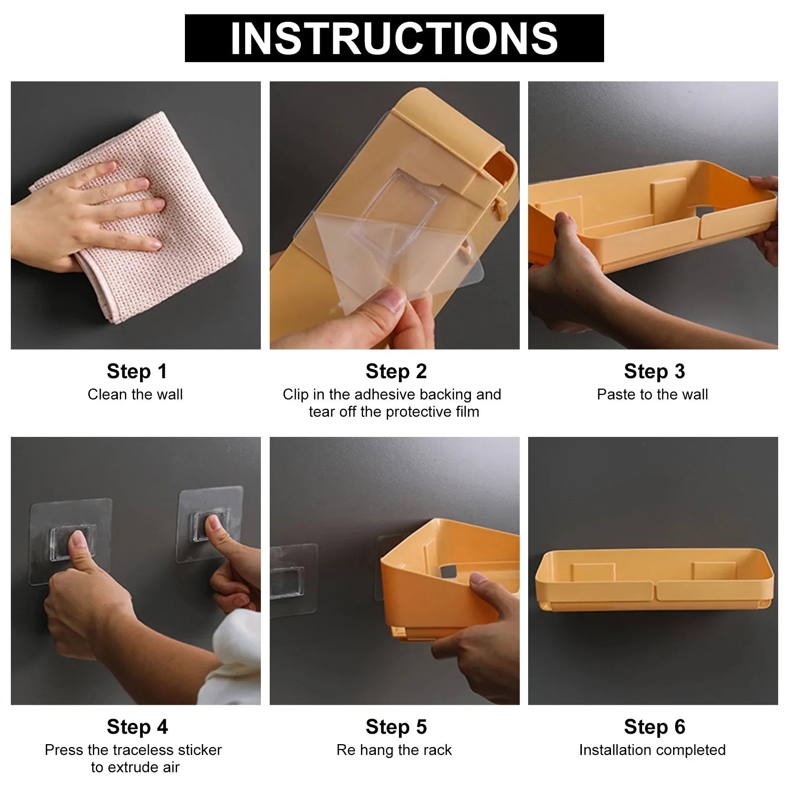 Bathroom Kitchen Convenience Rack Shelf Makeup Storage Organizer Cosmetics Shampoo Rack Shower Shelf Wall Spice No Drilling