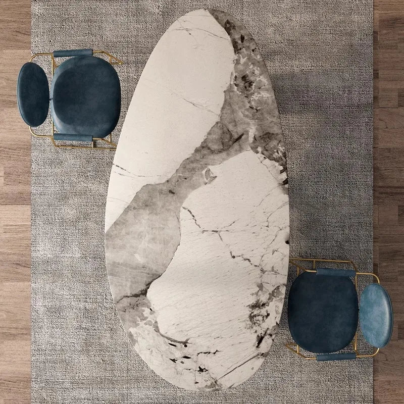 Italian Luxury Stainless Steel Dining Table, Oval Imported Stone Tabletop, Trending Villa Home Design, Corrosion/Heat/Easy-Clean
