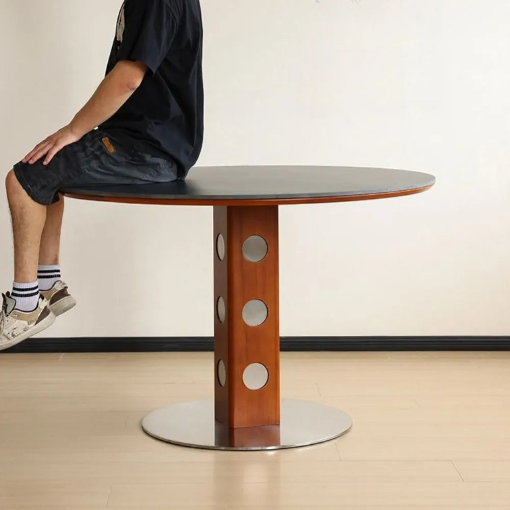 2. Solid wood square table legs adorned with metal polka dots, breaking the basic understanding of round table cylindrical table legs