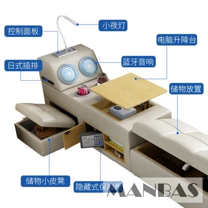 Modern Multi-Functional Tech Smart Bed with Storage, Speakers, USB, Bookshelves, and Tatami – Luxury King/Queen Ultimate Bed